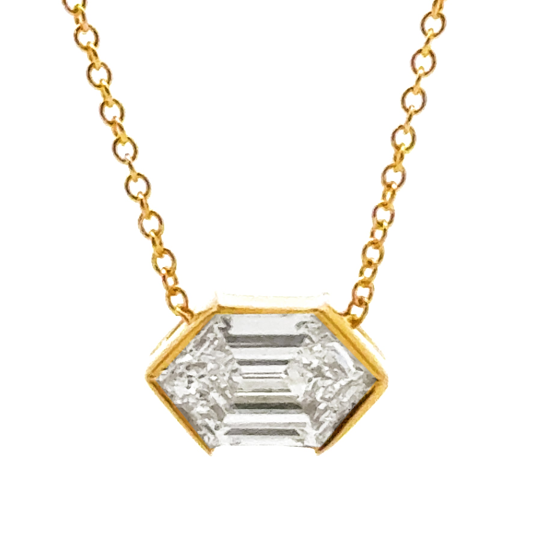 Linea - Half Bezel Hexagon Diamond Necklace, 1.03 ctw, 18K yellow gold